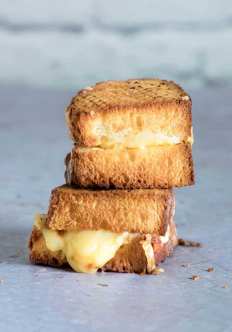 Y ahora hablemos del pan a la plancha con queso. Ay pan, dulces carbohidratos como te queremos. El pan más habitual sería el pan blanco, pero también funcionan muy bien los Multicereales y los Integrales, pero Puedes usar todo el pan que tengas en tu despensa. Si buscas algo diferente, prueba Sourdough, Pumpernickel o Rye.