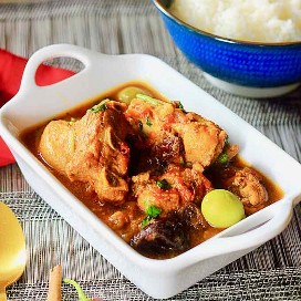 Las ciruelas y los albaricoques en los guisos de pollo provienen de la influencia marroquí y árabe en la cocina española. La presencia de jitomate y chile en la salsa es representativa de nuestras raíces mesoamericanas. La riqueza y complejidad de todas las especias, junto con las aceitunas y las ciruelas, hacen de este plato un excelente competidor entre los guisos más famosos, como son: gallo al vino Y Tagine de pollo (djaj mqualli).