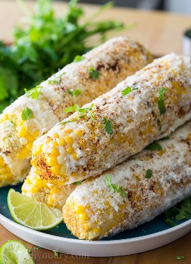 - Sirva con una rodaja de limón (use el limón para sazonar el jugo de limón en todas las mazorcas).