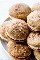 - Usando una bola mediana para galletas, coloque pilas de masa, aproximadamente 1 y 1/2 cucharadas cada una, en bandejas para hornear preparadas con una separación de 3 pulgadas. Si lo desea, espolvoree cada uno con azúcar de canela. Ver nota de receta.