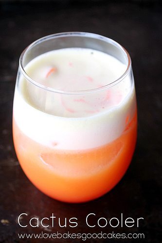 Este Cactus Cooler tiene jugo de naranja, jugo de piña, jugo de limón y granadina. Es perfecto para el clima más cálido (¡que estamos experimentando en Phoenix!). Sería genial con sus comidas temáticas mexicanas o del sudoeste…. y como no hay alcohol, a los peques también les encantaría!