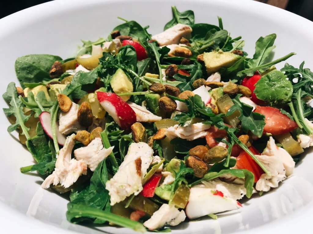 Esta colorida ensalada de pollo y verduras es una excelente ensalada cetogénica, antiinflamatoria y para quemar grasa que es fácil de preparar y está repleta de nutrientes que respaldan una función cerebral saludable y una energía óptima. Voy a tener algo como esto un par de veces a la semana para el almuerzo.