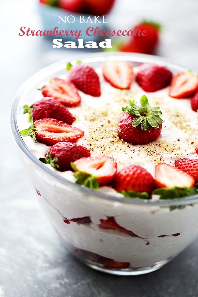 Ensalada de cheesecake de fresas sin horno – Postre delicioso, cremoso, ligero y sin horno, ¡perfecto para tus fiestas de verano! ¡No se necesita horno y todos siempre piden más!