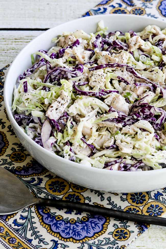 Actualicé las fotos para esto. Ensalada de col rizada baja en carbohidratos con semillas de apio y mostaza al comienzo del verano y de alguna manera me empujaron al final de la línea y olvidé compartirlo con ustedes. ¡Espero que no pienses que es demasiado tarde para una simple ensalada de pollo y repollo para la cena!