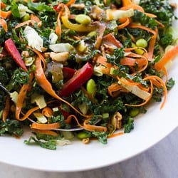 ¡Esta ensalada es una de las mejores que he probado! Es el equilibrio perfecto de texturas y sabores y te hará sentir genial. Las ensaladas de col rizada son mi opción cuando siento que necesito reiniciar. Además de sus beneficios desintoxicantes para la salud, puedes comerlo todos los días simplemente porque es delicioso. También está aprobado por mi esposo y mi esposo dice que es la mejor ensalada de col que ha probado.