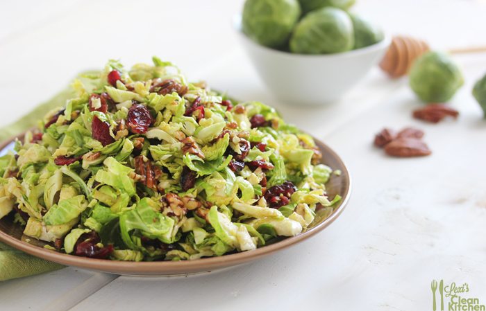 Ensalada de coles de Bruselas con arándanos y nueces trituradas {con vinagreta de canela y miel de Dijon}