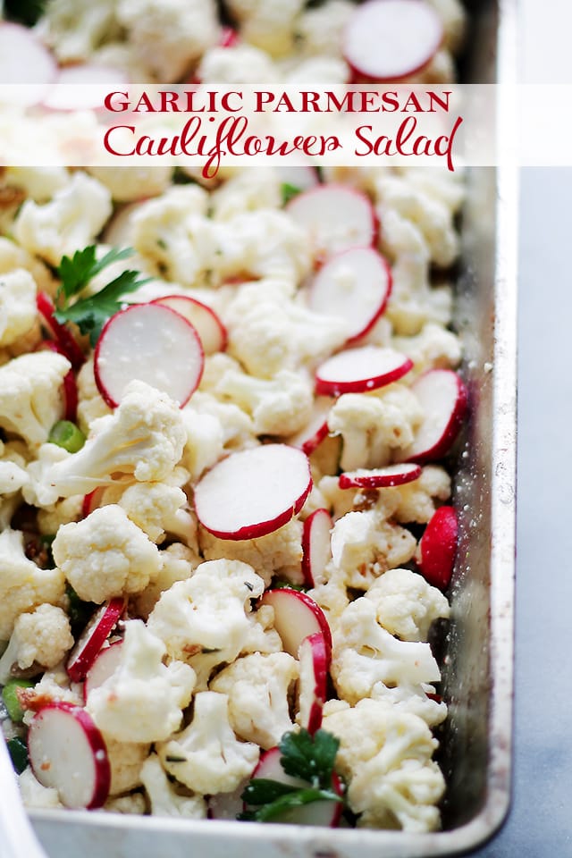 Cuando preparé esta ensalada por primera vez, fue con un propósito. Esta ensalada fue una excelente manera de cerrar la brecha en nuestra casa entre un amante del ajo y un enemigo de la coliflor.
