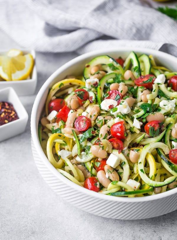 Esta saludable y fácil de preparar ensalada de fideos con calabacín llena lo suficiente como para servir como una comida vegetariana, pero también puede servir como una sabrosa ensalada que a todos les encantará.