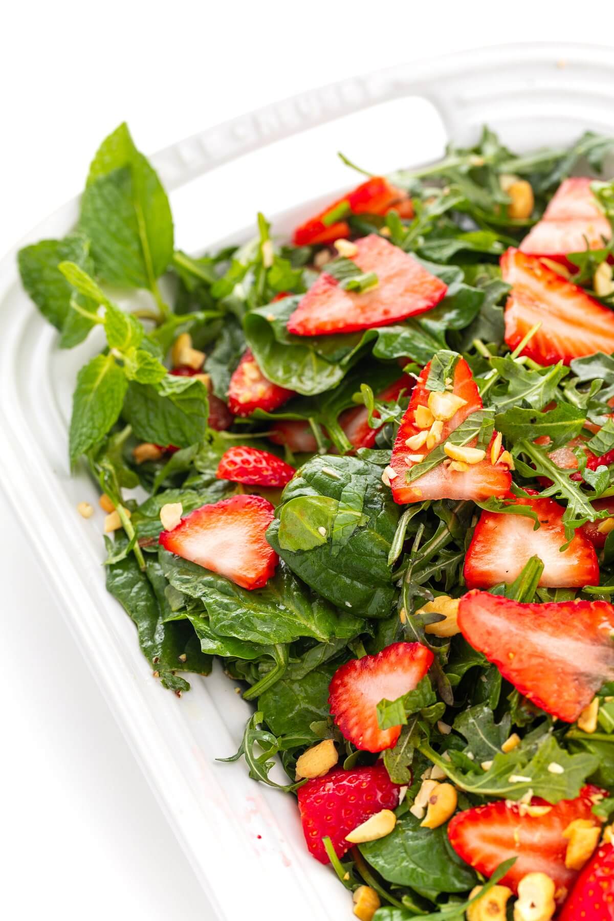 Hace poco decidí hacer una ensalada de fresas con rúcula y anacardos. La incorporación de nueces en las ensaladas es una excelente manera de agregar ácidos grasos omega-3 saludables que lo mantendrán lleno por más tiempo. Además, las nueces brindan una textura y un crujido adicionales.
