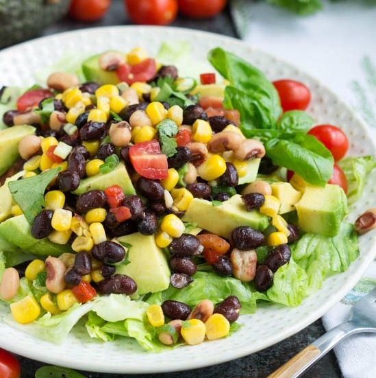 Es una ensalada ligera y brillante con audaces sabores sureños. Otra ventaja, esto se puede hacer muy rápidamente. Los frijoles enlatados son ideales para esta receta; Esto también hace que sea muy fácil de hacer. Y es muy fácil tener siempre los ingredientes en la despensa. Coincidentemente, esto lo convierte en una excelente comida entre semana. Lo cual es una gran ventaja para mí ya que los niños están de regreso en la escuela y tienen actividades adicionales.
