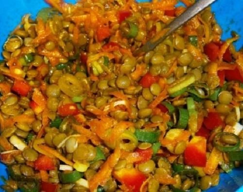 ¡Cuanto más tiempo permanezca la ensalada, mejor sabrá! También puedes usar lentejas verdes en lugar de marrones.