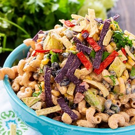 Esta ensalada de pasta Tex-Mex es verdaderamente personalizable. Puedes dejar casi todos los ingredientes o reemplazarlos por otras cosas.