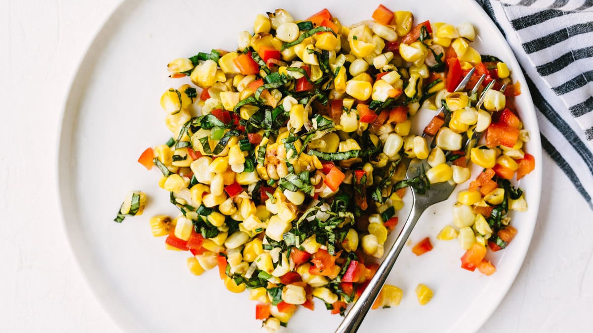 Ensalada De Maíz A La Plancha Con Pimientos Y Albahaca