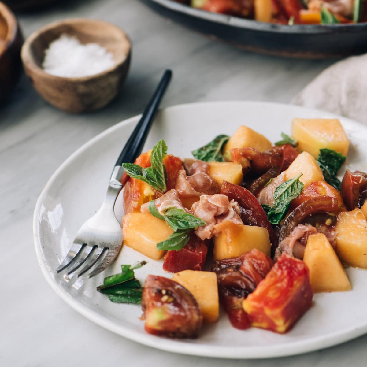 Los alimentos simples pueden ser los mejores alimentos, y esta ensalada de melón con jamón y tomate es toda la prueba que necesito para respaldarla y apoyarla bien.