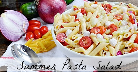 Sé que he dicho esto antes, pero estoy tan contenta de que hace calor aquí. Se acerca el verano y mi mamá ha estado trabajando incansablemente en su jardín para plantar todas mis verduras favoritas. Creo que podría ser mi parte favorita del verano. Mi mamá llega todos los días a casa con un puñado de tomates maduros frescos, pepinos, calabacines… lo que haya salido de su jardín esa mañana. Vivo casi de pepinos y tomates encurtidos en aceite y vinagre servidos con pan casero (también proporcionado por mi madre, es realmente el mejor). Cuando tenemos invitados, o simplemente estamos horneando, la convierto en una ensalada de pasta con algunas adiciones simples.