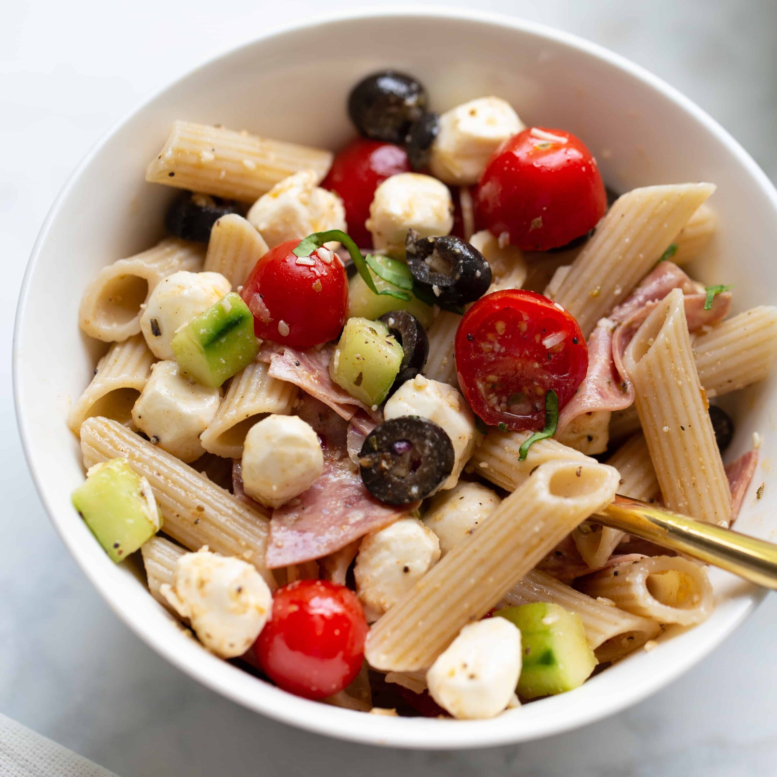 Una merienda de verano no estaría completa sin un delicioso plato de ensalada de pasta. ¡Podría comer ensalada de pasta cualquier día de mi vida y esta ensalada de pasta italiana sin gluten es mi favorita!