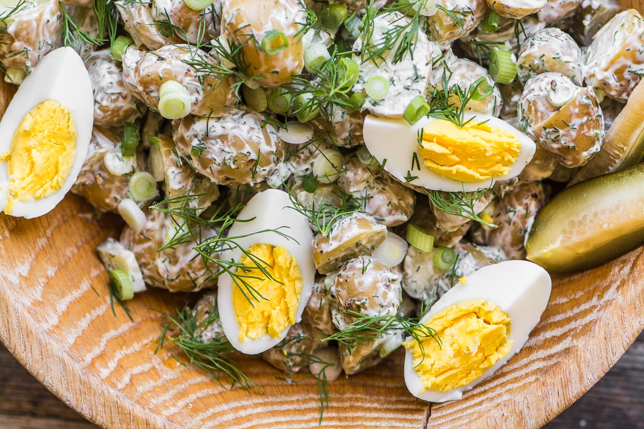 ¿Conoces a alguien que esté embarazada? Sería divertido traerte una gran porción de esta ensalada de papas en escabeche con eneldo, ¡sé que te lo agradecería! Y DEBES llevarlo a tu próxima comida, la gente te preguntará por la receta de la mafia