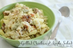 Recibí esta receta hace al menos 10 años. Había sido entregado a la tienda de comestibles, incluida una muestra para probar. Yo estaba estudiando economía doméstica en ese momento y cocinar era una de mis cosas favoritas, así que disfruté mucho coleccionando recetas… y probando muestras. De todos modos, a mi esposo y a mí nos encanta cenar, especialmente en verano, ya que se prepara rápidamente con la ayuda de la parrilla. Esta ensalada de pollo a la parrilla y manzana siempre es un éxito en las fiestas también. Las combinaciones dulces y saladas son mis favoritas, por eso amo tanto esta ensalada.