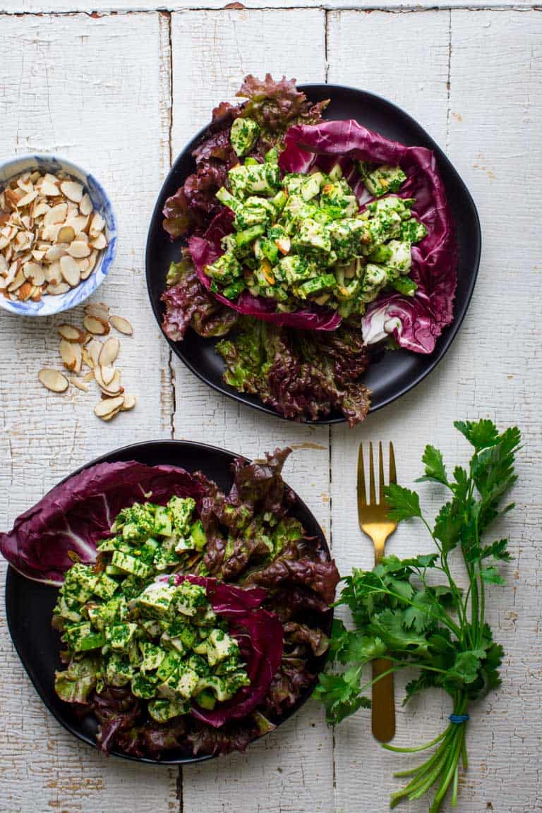 ¡Esta ensalada de pollo con chimichurri sin mayonesa será el almuerzo de regreso a la escuela de tus sueños y termina siendo apto para Whole 30, sin gluten y listo en 25 minutos!