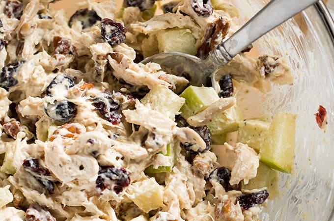 Ensalada De Pollo Con Arándanos – ¡La mejor ensalada de pollo rellena de arándanos, manzanas y nueces! ¡Esta ensalada de pollo es la envoltura o sándwich perfecto para un almuerzo o cena ligero de otoño!