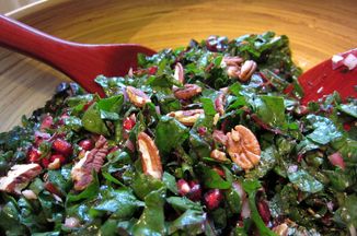 Esta es mi ensalada familiar favorita para las vacaciones por muchas razones: todos los ingredientes están en temporada en invierno; es una hoja ligera y sustanciosa para lo que a menudo es un plato principal pesado; y los vibrantes rojos y verdes prácticamente gritan, “¡Ho! ¡Yo tengo! ¡Lo tengo!” Y otra razón: ¡es delicioso! Escalfar las nueces es un paso estrictamente opcional, siempre puedes tostarlas ligeramente, ¡pero siempre agrego dulces a la ensalada cuando puedo salirme con la mía! -vrunka