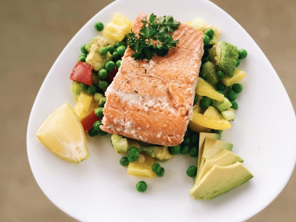 Los vegetales multicolores aportan fitonutrientes únicos que hacen que esta comida sea sumamente equilibrada y produzca energía limpia. Puedes probar un increíble salmón salvaje de Vital Choice y US Wellness Meats: aquí