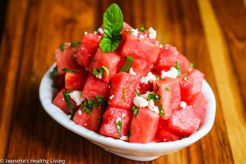 Sandía a la menta con queso de cabra añejo Es la ensalada de verano perfecta que equilibra los sabores dulces y salados. Todos los veranos esperamos cada sandía que aparece en el supermercado. Si bien la mayoría la comemos en rodajas o en glaseados de sandía, estoy empezando a buscar formas más interesantes de disfrutar esta fruta jugosa y crujiente repleta de vitamina A y vitamina C a medida que avanza el verano. es dulce y salado Ensalada De Sandia Con Queso De Cabra Y Sandia Disfrute de la sandía de verano y de toda la menta fresca que se derrama en los recipientes de mi patio.