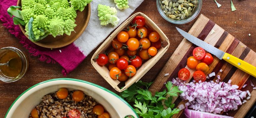La espelta es un grano antiguo versátil con un sabor a nuez que combina bien con tomates delicados y hierbas tiernas. Su textura deliciosamente masticable combina bien con vinagretas audaces, y los frijoles no se remojan durante la noche en el refrigerador.