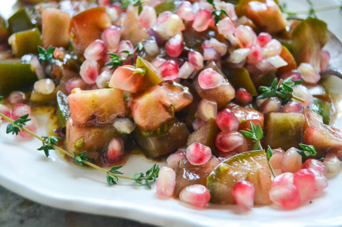 Recibí una entrega inesperada de Amazon el otro día… mi pensativo esposo ordenó una copia Mucho más, el nuevo libro de Yotam Ottolenghi! No podría estar más emocionado… de ella. Jerusalén Es el libro de cocina más inspirador que he tenido. Tiempo todo. Mucho más Es una nueva colección de platos vegetarianos y ya puedo decir que será igual de emocionante. acabo de recibir tprimero receta cuando aparece el conocido “efecto Ottolenghi”… la foto me hace hiperventilar, me inquieto y tengo que levantarme de un salto para ir a la cocina. Quién diría… tomate y granada… pero es una combinación fantástica y estoy feliz de descubrir algo tan simple y completamente nuevo.
