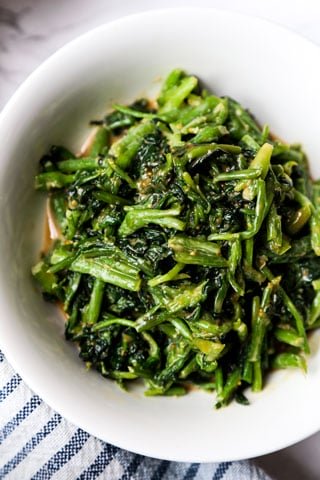 Al igual que las espinacas comunes, el ong choy tiene la capacidad de adquirir cualquier sabor. Y como el berro, tiene hojas tiernas y tallos crujientes.