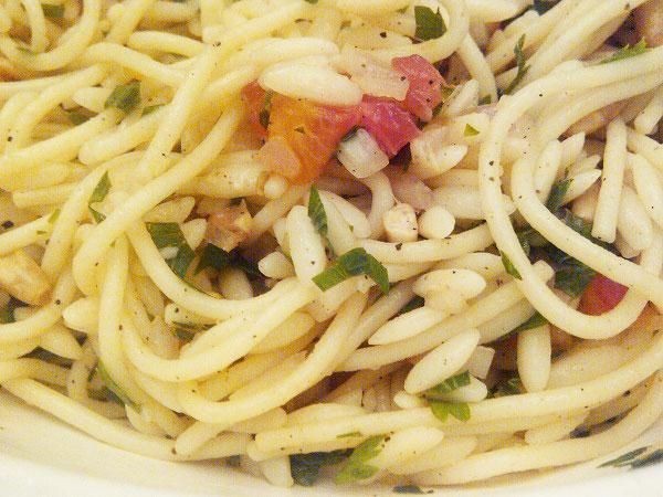 Añadir la cebolla, el tomate, los piñones y el perejil.