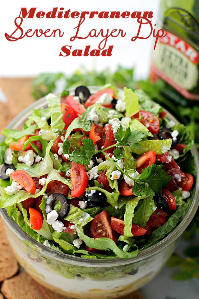 Ensalada mediterránea con aderezo de siete capas Tiempo de preparación 15 minutos Tiempo total 15 minutos Un fantástico aderezo mediterráneo de siete capas con hummus de ajo, yogur, alcachofas, aceitunas, queso feta y más. El aderezo para ensaladas perfecto para fiestas, picnics y reuniones familiares. Plato: Aperitivos Porciones: 14 Calorías: 70 kcal Ingredientes PARA FUMAR