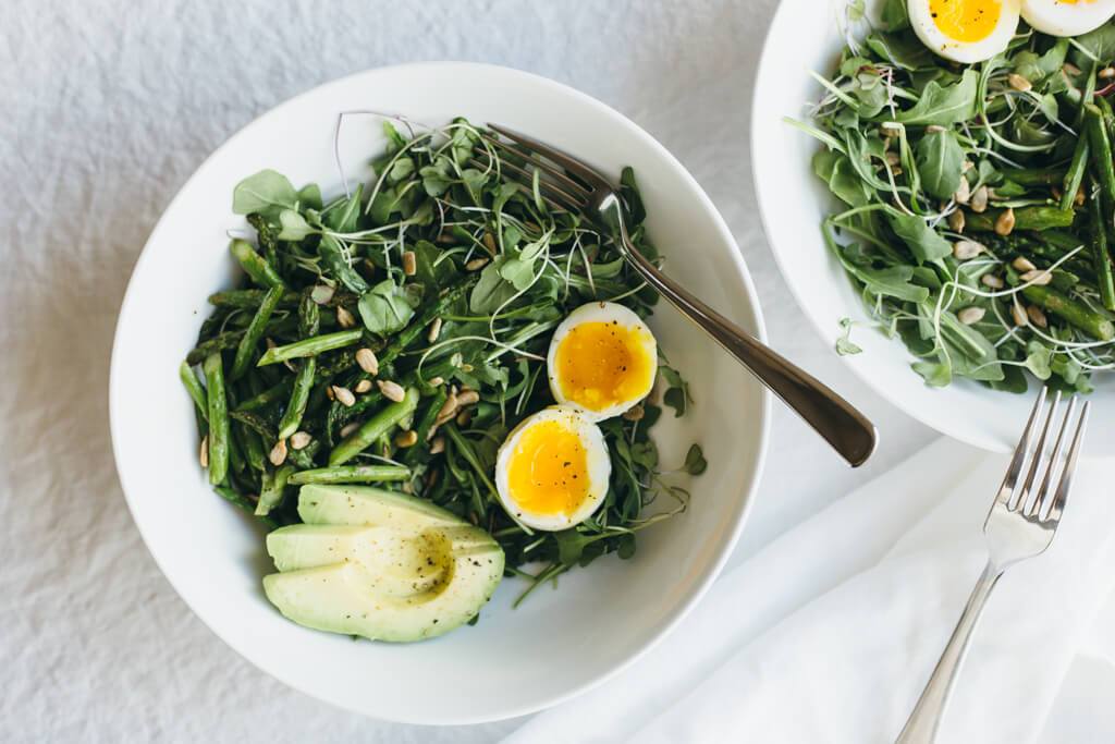 Ensalada para el desayuno con rúcula, espárragos y aguacate