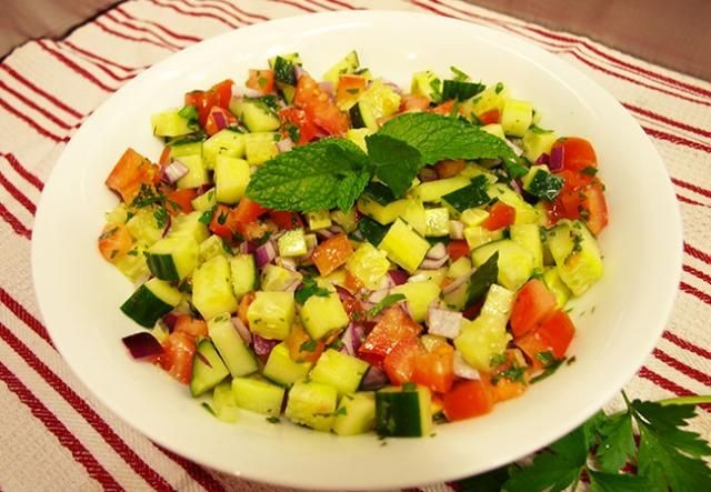 Agregue un tomate y un cuarto de pepino continental grande por cada 2 porciones adicionales necesarias.