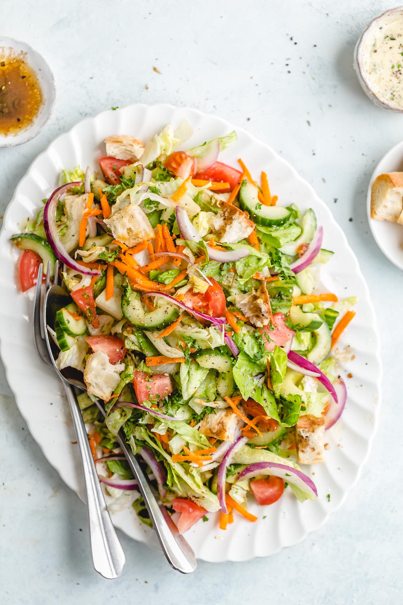 Puede duplicar la receta, cortarla por la mitad, hacerla más parecida a una comida agregando pollo, bistec, pescado o frijoles, o condimentarla con picatostes, queso y nueces. Puedes cambiar el aderezo por el que prefieras. Incluso puedes hacerlo el día anterior. En resumen, ¡no puedes arruinarlo!