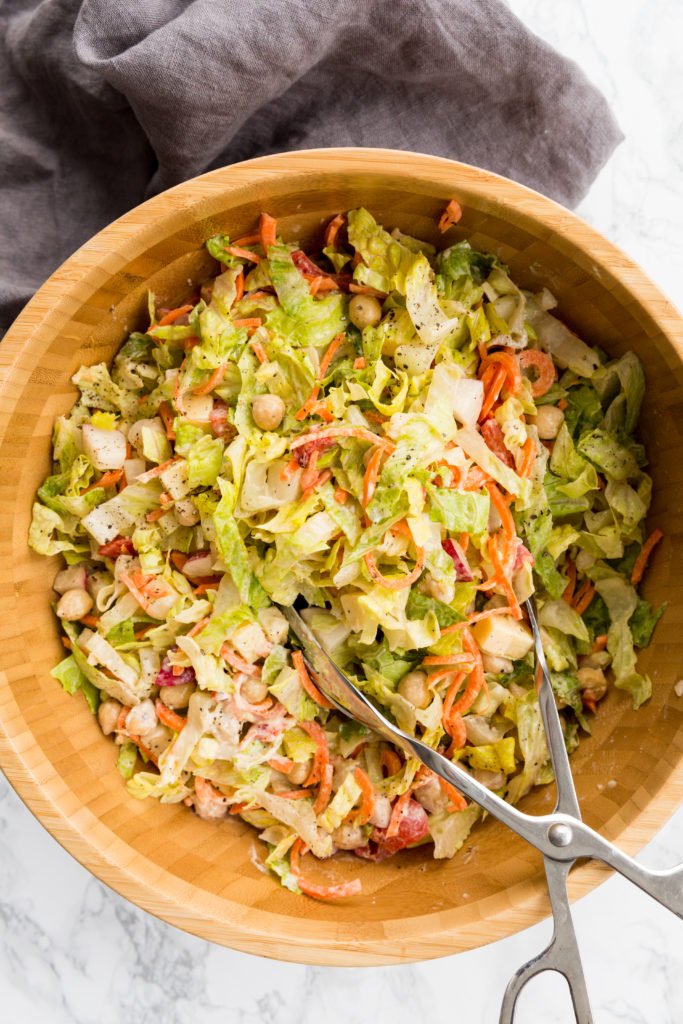 Si desea prepararlo con anticipación, agregue la lechuga antes de servir y mantenga la lechuga y el resto de los ingredientes separados. La lechuga romana es la típica ensalada verde picada, pero puedes darle un toque diferente utilizando una lechuga picada diferente.