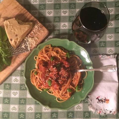 - 575 g Leggo boloñesa – salsa de pasta espesa con vino tinto, tomate espeso y hierbas