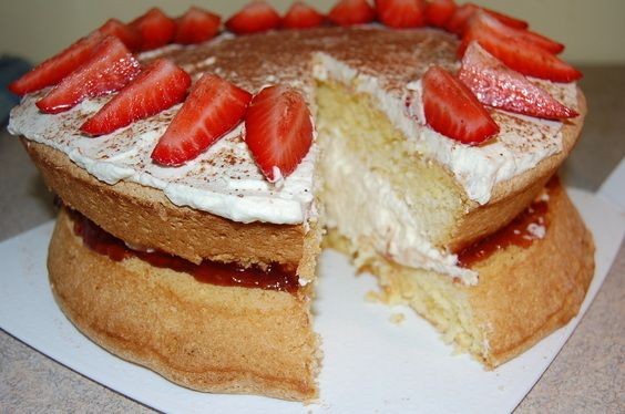 Relleno el bizcocho con nata y a veces con fresas.
