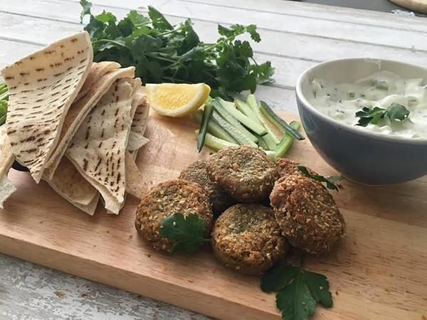Sirva con yogur, pan libanés, rodajas de limón y palitos de vegetales.