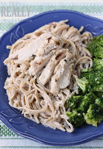 La última vez que hice los fettuccine alfredo en realidad eran “espaguetis integrales alfredo”. Para agregar proteínas (es decir, para que me sienta menos culpable por tener segundos), lo cubrí con rebanadas. pollo con ajo y albahaca. Fue absolutamente delicioso… y absolutamente fácil.