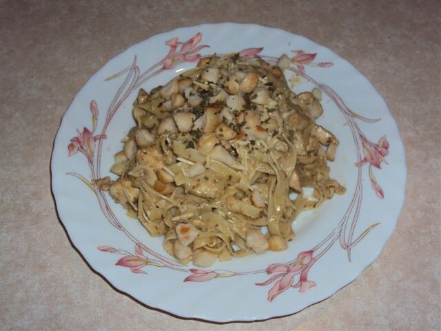 Agregar los fetuccini cocidos y escurridos y mezclar.