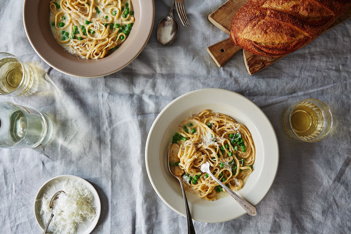 QUIÉN: Sdebrango vive actualmente en Brooklyn, Nueva York, y proviene de una gran familia italiana a la que le encanta cocinar. QUÉ: Una pasta italiana fácil de preparar con sabor primaveral. CÓMO: Cocine los guisantes y la pasta fresca en caldo de pollo, luego agregue un huevo y una porción generosa de pecorino romano para atarlo todo en una manta de queso. POR QUÉ NOS ENCANTA: La profundidad del sabor de esta sopa contrasta con su corta lista de ingredientes y su rápido tiempo de cocción para que sea la comida perfecta para la noche entre semana, cortesía de su refrigerador. Los guisantes molidos complementan el caldo aterciopelado y sabroso, animado por una pizca (o dos) de ralladura de limón; podríamos hacerlo nuevamente para la cena de esta noche. – Editores