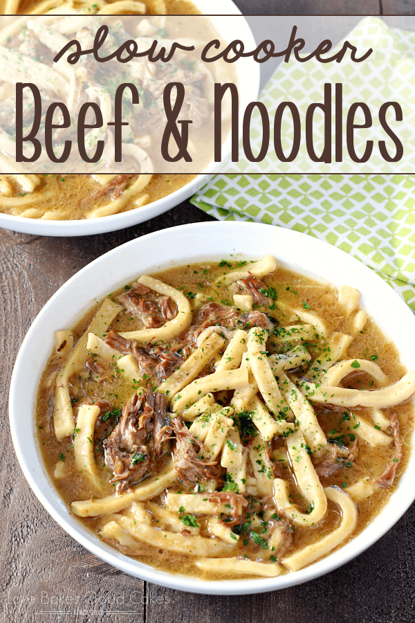 ¡Delicioso y pegado a las costillas, esta olla de cocción lenta de carne de res y fideos es muy fácil!