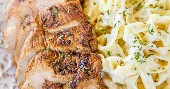 ¡Este lomo de cerdo a la parrilla es perfecto para el carnaval de la próxima semana! Sabe tan increíble. El cerdo se marina durante la noche en una mezcla de especias, luego se carboniza y se termina en el horno. ¡Tan fácil y sabe mejor que cualquier restaurante! ¡Las sobras son geniales en un rollo con un poco de salsa remoulade! ¡Mmm! Este lomo de cerdo ennegrecido se marina en una combinación de ajo, cebolla, tomillo, orégano, paprika, estragón, sal, pimiento rojo, pimienta negra, aceite de oliva y salsa Worcestershire. Tiene mucho sabor. No es un plato picante. Solo hay un poco de pimiento rojo en la marinada. Definitivamente puedes reducirlo o eliminarlo si te preocupa el calor. Nos encanta este lomo de cerdo a la parrilla. Era tan tierno y jugoso. Servimos el cerdo con un acompañamiento de fettuccine alfredo. Usé mi receta para Los mejores Fetuccini Alfredo. ¡AH-MAZ-ING! Tengo esto en el menú de Mardi Gras. ¡No puedo esperar para comer de nuevo!