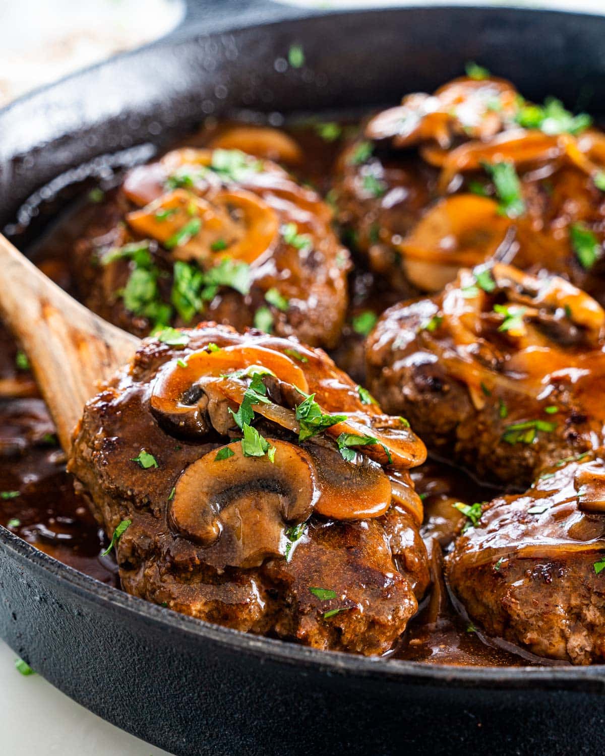 Hay muchas maneras de hacer esto zhuzh Recoja su bistec Salisbury. Agregar mostaza, salsa picante, fresca, hierbas, etc. Hoy tengo una receta clásica y básica que se mostrará por sí sola, pero le dará mucho espacio para hacer cambios aquí y allá para que sea perfecta para tú familia.
