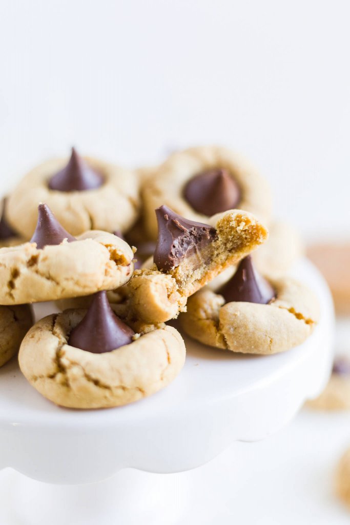 ¡La mantequilla de maní sin gluten de Bloom es una receta clásica de galletas navideñas que todos sus amigos y familiares sin gluten pueden comer! Soy una simple galleta de mantequilla de maní hecha con besos de Hershey. ¡Te encantará lo fáciles y deliciosos que son!