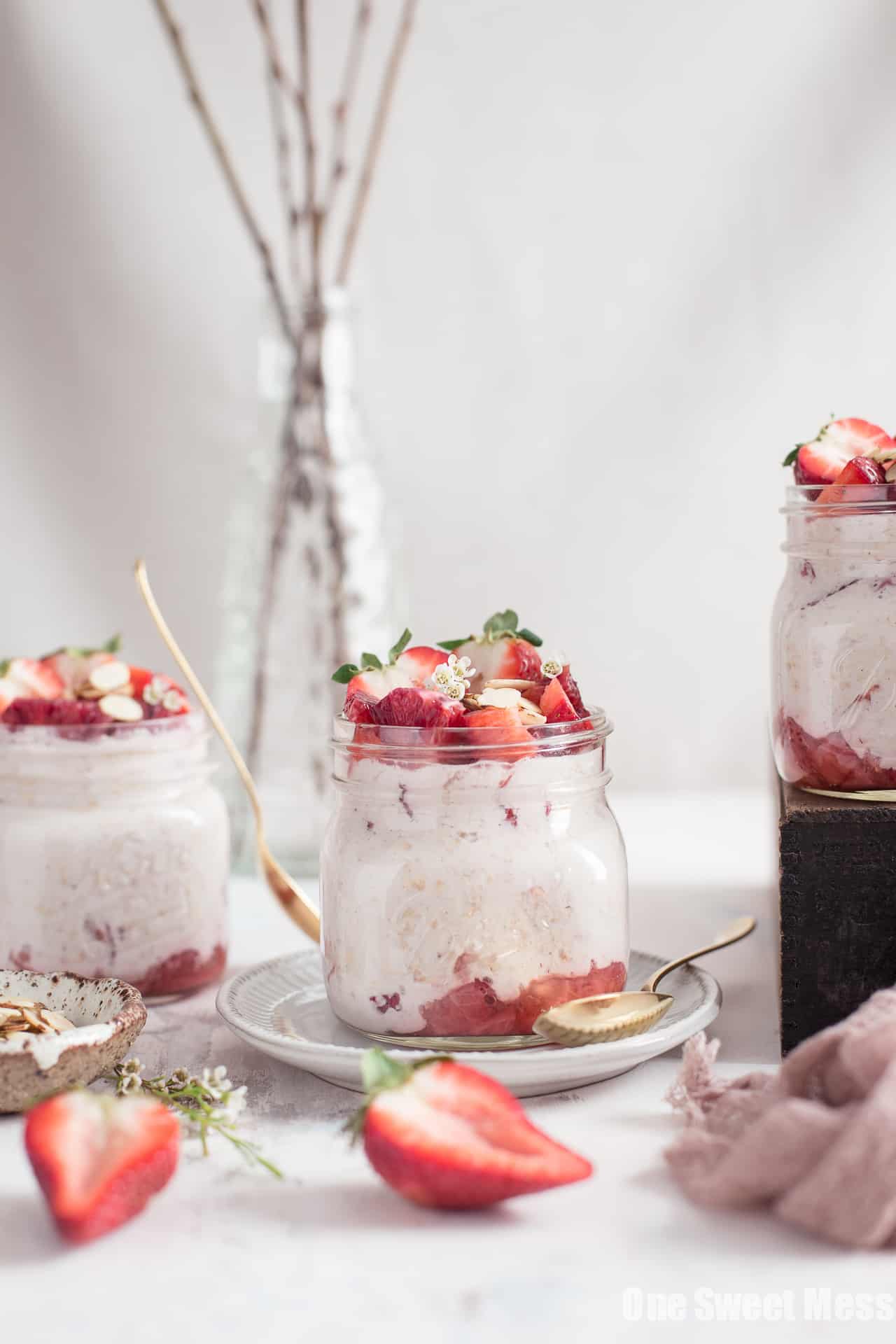 Déjame darte una advertencia: esta crema de fresa y avena durante la noche es deliciosamente adictiva. Creo que es bueno que sea saludable. También es libre de gluten y endulzado naturalmente.
