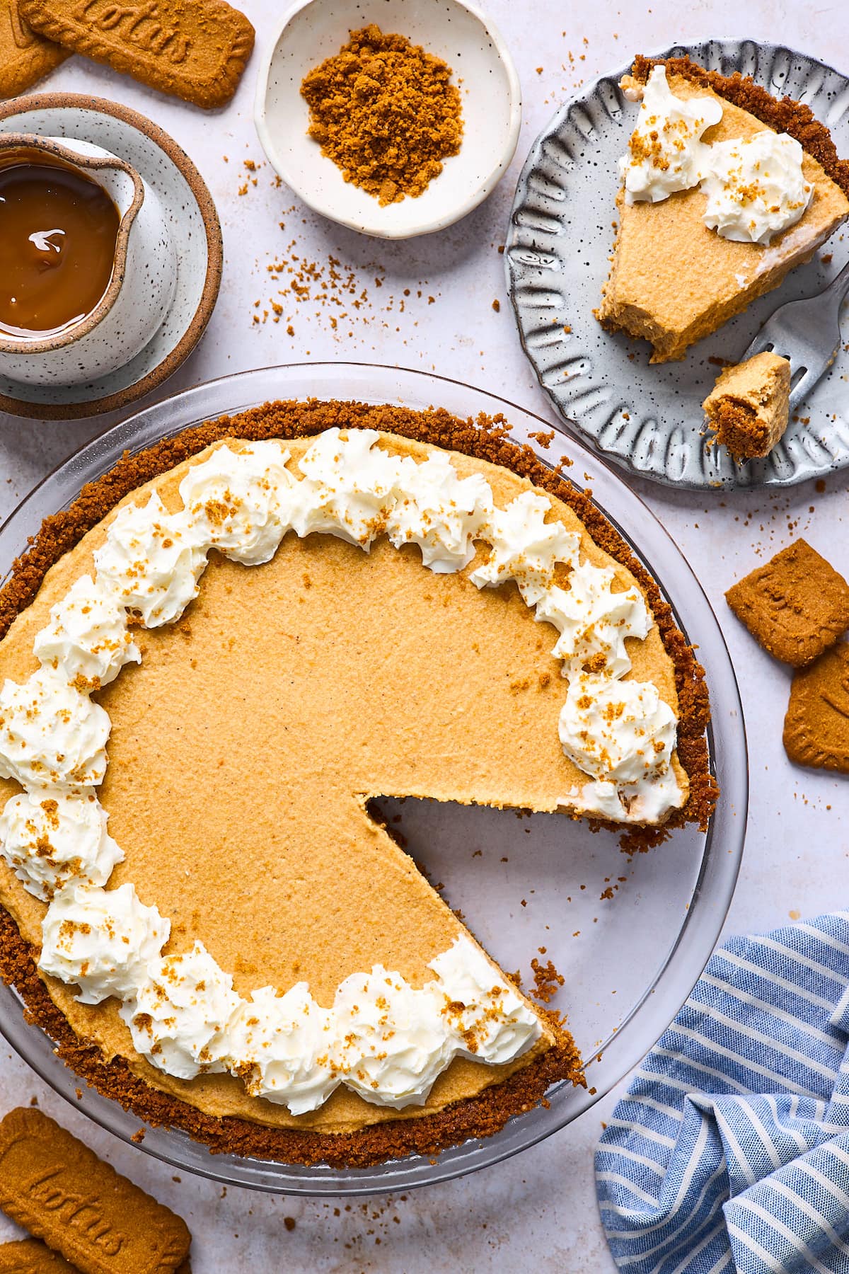 ¡Este pastel de calabaza Biscoff es un verdadero GANADOR! Recomiendo servirlo con crema batida y salsa de caramelo salado. ¡Mmm!