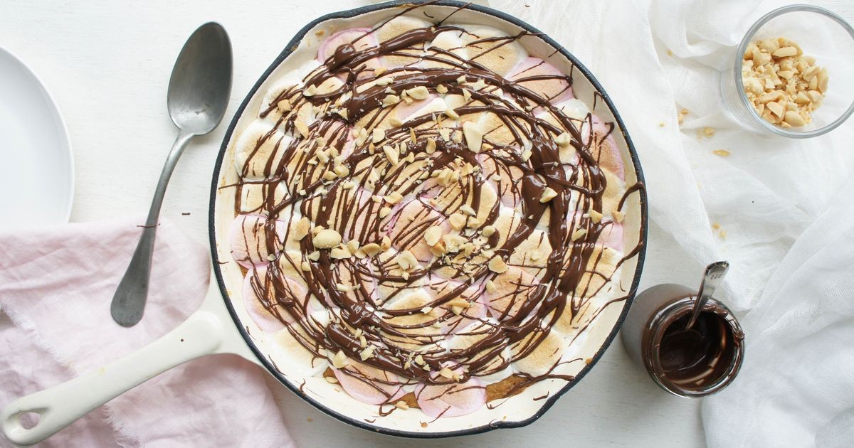 Espolvorear el chocolate derretido por encima. Debe servirse caliente. Puede cortar en trozos individuales o darle una cuchara a cada persona para que coma directamente de la olla caliente.