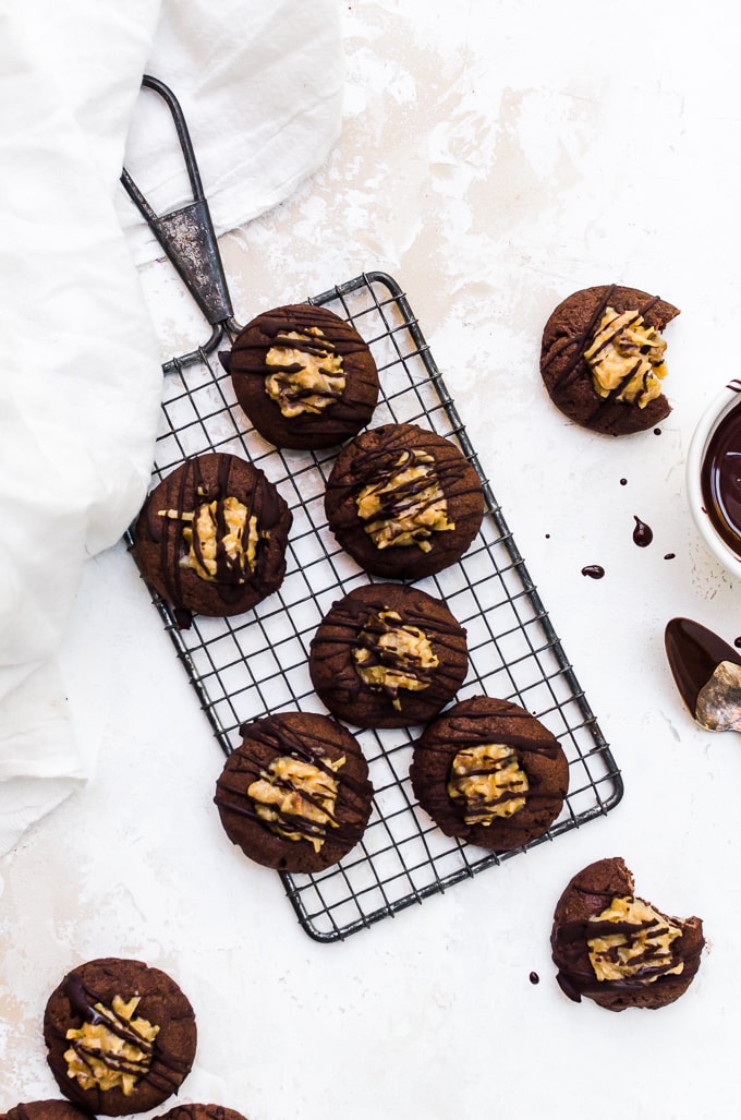 Simplemente enrolle la masa en bolas y use el dorso de una cuchara o su pulgar para hacer una impresión profunda en la galleta. En el horno, la muesca puede hincharse un poco, pero puede empujarla hacia abajo mientras la galleta aún está tibia, pero no caliente.